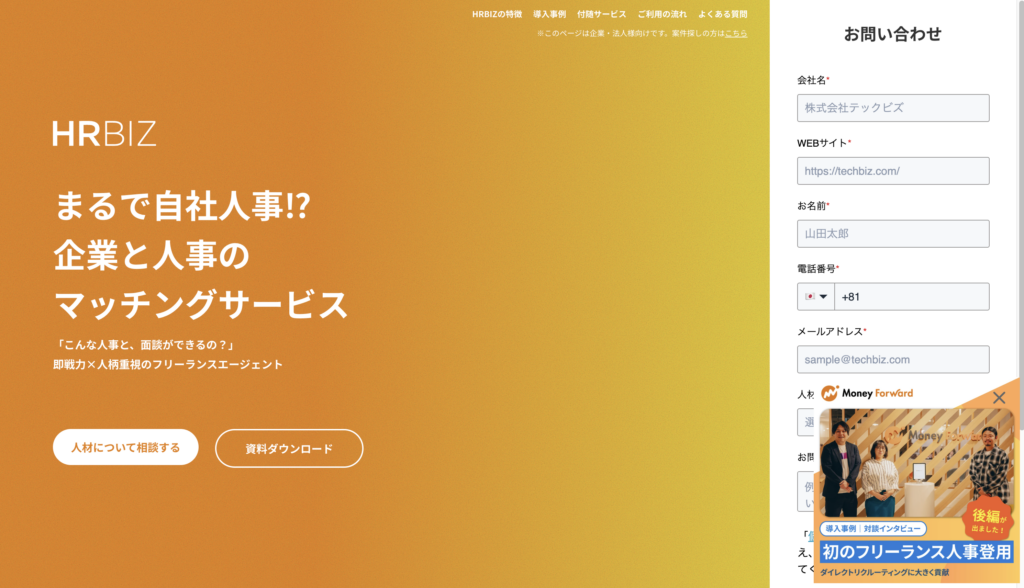「HRBIZ」は即戦力と人柄を重視する、フリーランス人事のマッチングサービスです。専門性やスキルの高い人材が在籍しており、過去には以下の人材を提案したことがあります。