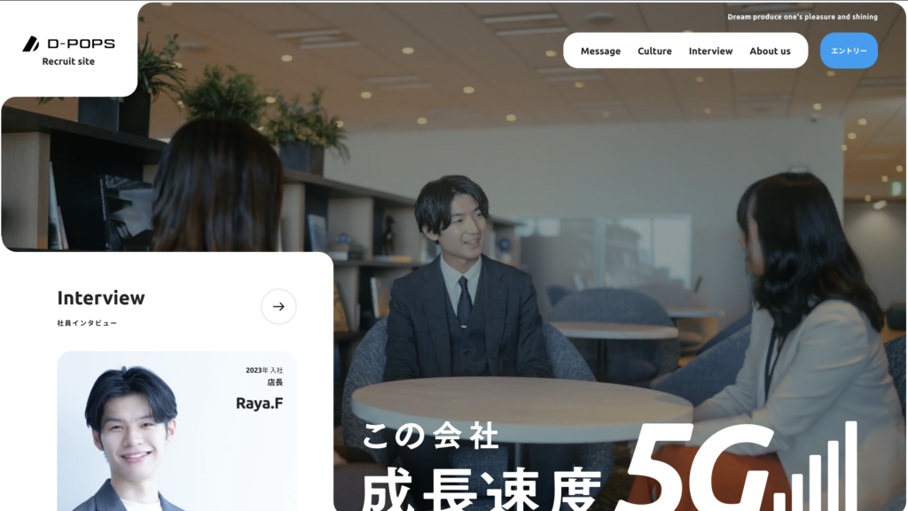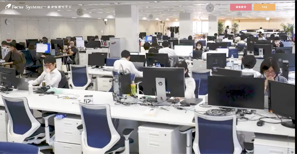 ユーザーのスクロール操作に合わせて、ストーリー仕立てでコンテンツを展開していく手法です。企業の歴史やビジョン、社員の成長物語などを没入感たっぷりに伝え、求職者の共感を呼び起こします。